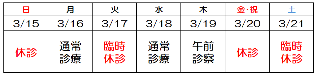 3月休診のお知らせ